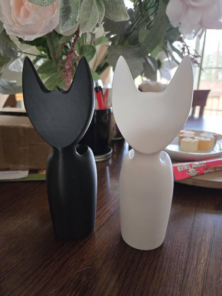 Add a whimsical touch with this black cat vase / cat flower vase—a small kitty bud vase made from PLA and designed for fresh flowers or a tiny plant moment. Size: 7.3" tall x 2.5" wide.